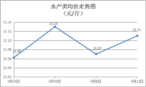 水产类商品价格小幅波动。本周所监测的10种水产商品价格波动情况为4涨5跌1平,综合均价为21.11元/斤,环比上涨0.19%。其中:鲫鱼、鳙鱼、罗非鱼、基围虾零售均价分别为每斤14.20元、10.58元、8.70元、38.10元,环比分别上涨0.28%、下降0.09%、上涨0.93%、下降0.10%。