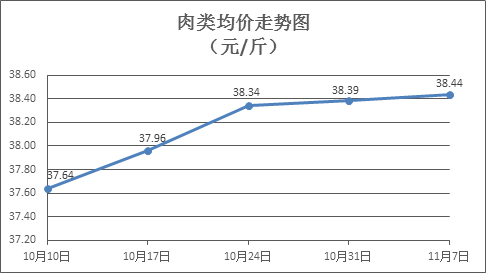 肉类商品价格总体微涨。本周所监测的8种肉类商品价格波动情况为5涨3跌,综合零售均价为38.44元/斤,环比上涨0.14%。其中:排骨、精瘦肉、有皮上肉、牛肉零售均价分别为每斤36.60元、25.84元、20.86元、54.72元,环比分别下降0.41%、上涨0.08%、上涨1.07%、上涨0.07%。