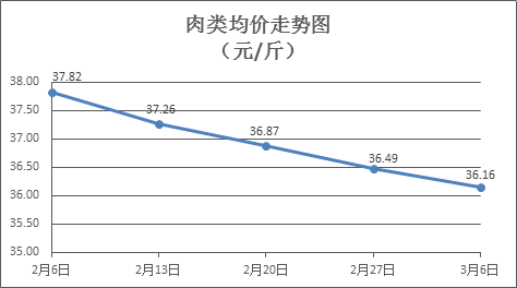 肉类商品价格继续下调。本周所监测的8种肉类商品价格均有所下降,综合零售均价为36.16元/斤,环比下降0.90%。其中:排骨、精瘦肉、有皮上肉、牛肉零售均价分别为每斤31.65元、20.98元、16.64元、54.11元,环比分别下降1.83%、下降2.15%、下降3.93%、下降0.18%。