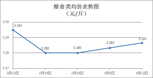 粮食类商品价格稳中微涨。本周所监测的6种粮食商品价格波动情况为2涨4平,综合零售均价为3.287元/斤,环比上涨0.10%。其中:晚籼米、丝苗米、标准粉零售均价分别为每斤3.26元、3.44元、3.14元,环比分别持平、上涨0.29%、上涨0.32%。