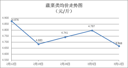 据本市21家农贸市场监测数据显示,上周3月6日至3月12日(下同)市场上各类“菜篮子”商品供应充足,所监测的7大类“菜篮子”商品价格2涨5跌。其中:粮食类、水果类商品价格稳中微涨,食用油类、肉禽蛋类、蔬菜类、水产类商品价格总体略降。结合当前季节气候和供需情况来看,预计近期市场商品价格将仍以窄幅波动为主,部分肉菜类商品价格还有继续下调预期。