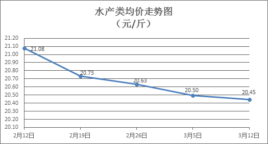 水产类商品价格窄幅盘整。本周所监测的10种水产商品价格波动情况为3涨5跌2平,综合均价为20.45元/斤,环比下降0.24%。其中:草鱼、鲫鱼、罗非鱼、基围虾零售均价分别为每斤10.98元、13.93元、8.59元、38.56元,环比分别下降1.79%、下降0.43%、下降0.23%、上涨0.03%。
