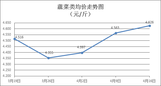 据本市21家农贸市场监测数据显示,上周4月9日至4月16日(下同)市场上各类“菜篮子”商品供应充足,所监测的7大类“菜篮子”商品价格5涨2跌。其中:蔬菜类、家禽类、水产类商品价格略有上涨,肉类、蛋类、水果类商品价格小幅盘降。结合当前天气和市场供需情况来看,近期蔬菜类商品价格仍有上调预期,猪肉商品或还有一定下跌空间,其他商品价格则以窄幅波动为主。