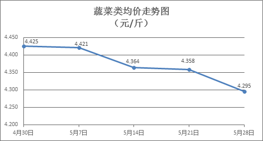 蔬菜类商品价格以降为主。上周所监测的32 种蔬菜商品价格波动情况为8涨23跌1平,综合零售均价为4.295元/斤,环比下降1.43%。其中:涨幅居前的品种包括菠菜、丝瓜、生姜,零售均价分别为每斤5.20元、4.54元、6.81元,环比分别上涨3.38%、2.71%、1.49%;跌幅居前的品种包括白苋菜、本地菜心、苦瓜,零售均价分别为每斤4.00元、4.64元、4.59元,环比分别下降7.41%、5.50%、4.97%。