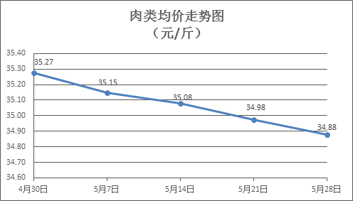 肉类商品价格总体略降。上周所监测的8种肉类商品价格波动情况为2涨6跌,综合零售均价为34.88元/斤,环比下降0.29%。其中:排骨、精瘦肉、有皮上肉、牛肉、带骨羊肉零售均价分别为每斤28.80元、18.73元、14.03元、54.59元、45.89元,环比分别下降0.66%、下降0.85%、下降1.20%、上涨0.07%、下降0.37%。