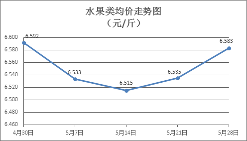 水果类商品价格微幅上涨。上周所监测的6种水果商品价格波动情况为4涨1跌1平,综合零售均价为6.583元/斤,环比上涨0.74%。其中苹果、香蕉、葡萄零售均价分别为每斤7.36元、3.23元、13.36元,环比分别上涨1.10%、持平、上涨0.60%。
