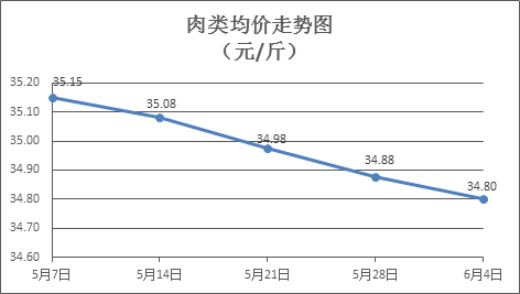 猪肉类商品价格小幅下降。上周所监测的8种肉类商品价格波动情况为2涨6跌,综合零售均价为34.80元/斤,环比下降0.22%。其中:排骨、精瘦肉、有皮上肉、牛肉、带骨羊肉零售均价分别为每斤28.71元、18.43元、14.01元、54.68元、45.84元,环比分别下降0.31%、下降1.60%、下降0.14%、上涨0.16%、下降0.11%。
