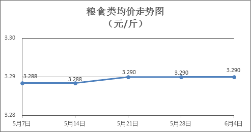 粮食类商品价格基本平稳。上周所监测的6种粮食商品价格环比均持平,综合零售均价为3.290元/斤。其中:丝苗米、油粘米、标准粉零售均价分别为每斤3.46元、3.42元、3.14元,环比均持平。