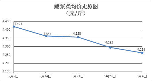 据本市21家农贸市场监测数据显示,上周(5月28日至6月4日,下同)市场上各类“菜篮子”商品供应充足,所监测的7大类“菜篮子”商品价格3涨3跌1平。其中:粮食类、水产类商品价格基本平稳,食用油类、肉菜类商品价格总体略降,禽蛋类、水果类商品价格有所上涨。端午节临近,预计近期部分水果类、肉禽蛋类商品需求上升,价格略有上涨,其他商品价格小幅波动。
