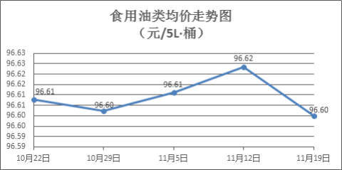 食用油类商品价格微幅波动。上周所监测的9种食用油(5L装)商品价格波动情况为3涨5跌1平,综合零售均价为96.60元/桶,环比下降0.02%。其中:鲁花花生油、金龙鱼调和油零售均价分别为每桶157.31元、74.95元,环比分别下降0.03%、上涨0.07%。