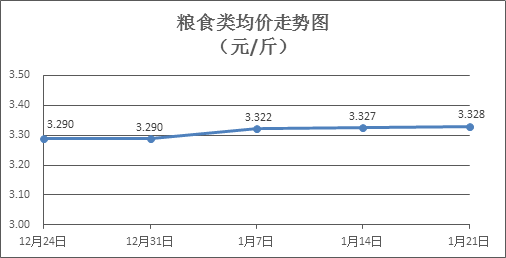 粮食类商品价格基本平稳。上周所监测的6种粮食类商品价格波动情况为1涨5平,综合零售均价为3.328元/斤,环比上涨0.05%。其中:晚籼米、油粘米、标准粉零售均价分别为每斤3.29元、3.47元、3.20元,环比分别持平、持平、上涨0.31%。