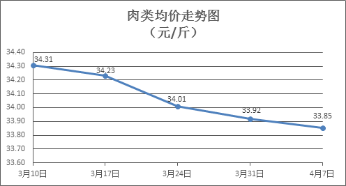 肉类商品价格总体微降。所监测的8种肉类商品价格波动情况为1涨5跌2平,综合零售均价为每斤33.85元,环比下降0.20%。其中:排骨、精瘦肉、有皮上肉、牛肉、带骨羊肉零售均价分别为每斤29.25元、18.20元、14.54元、52.62元、44.03元,环比分别下降0.51%、下降1.14%、持平、下降0.04%、下降0.38%。