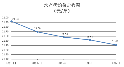 水产类商品价格普遍下降。所监测的10种水产商品价格波动情况为8跌2平,综合均价为每斤21.41元,环比下降0.50%。其中:草鱼、鲫鱼、罗非鱼、基围虾零售均价分别为每斤11.29元、14.19元、8.79元、33.98元,环比分别下降0.27%、下降0.42%、持平、下降1.05%。