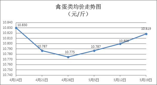 禽蛋类商品价格总体微涨。所监测的6种禽蛋类商品价格波动情况为4涨2跌,综合零售均价为每斤10.818元,环比上涨0.17%。其中:白条鸡、白条鸭零售均价分别为每斤20.08元、14.98元,环比分别上涨0.05%、上涨0.27%;红壳鸡蛋、咸鸭蛋零售均价分别为每斤7.21元、8.87元,环比分别上涨1.12%、上涨0.57%。