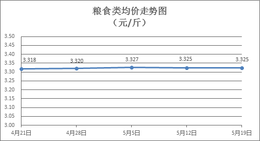 粮食类商品价格基本平稳。所监测的6种粮食类商品价格均持平,零售均价为每斤3.325元。其中:晚籼米、丝苗米、标准粉零售均价分别为每斤3.26元、3.56元、3.17元,环比均持平。