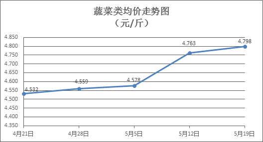 据本市21家农贸市场监测数据显示,上周(5月13日至5月19日,下同)市场上各类“菜篮子”商品供应充足,所监测的7大类“菜篮子”商品价格4涨2跌1平。其中:粮食类商品价格基本平稳,禽蛋类、蔬果类、水产类商品价格略有上涨,食用油类、肉类商品价格总体略降。受前期强降雨对蔬菜生长周期的影响,市场供应阶段性减少,蔬菜价格普涨,在未来龙舟水持续影响下,预计短期价格仍处高位横盘。