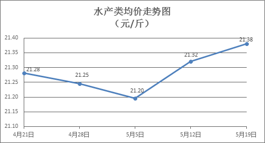水产类商品价格有所略涨。所监测的10种水产商品价格波动情况为7涨2跌1平,综合均价为每斤21.38元,环比上涨0.27%。其中:草鱼、鲫鱼、鲈鱼、基围虾零售均价分别为每斤11.22元、14.30元、19.21元、32.86元,环比分别上涨0.09%、上涨0.35%、上涨2.18%、下降0.12%。