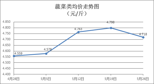 蔬菜类商品价格有所回落。所监测的32 种蔬菜商品价格波动情况为9涨21跌2平,综合零售均价为每斤4.718元,环比下降1.67%。其中:涨幅居前的品种包括西红柿、青尖椒、莲藕,零售均价分别为每斤4.96元、4.62元、5.88元,环比分别上涨4.86%、2.44%、2.44%;跌幅靠前的品种包括丝瓜、青豆角、花菜,零售均价分别为每斤4.32元、6.24元、5.04元,环比分别下降9.24%、9.17%、9.03%。