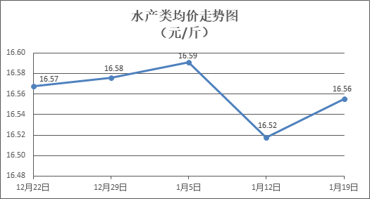水产类商品价格小幅波动。所监测的9种水产商品价格波动情况为4涨4跌1平,综合均价为每斤16.56元,环比上涨0.23%。其中:草鱼、鲫鱼、罗非鱼、鳙鱼、基围虾零售均价分别为每斤10.89元、14.10元、9.11元、10.47元、29.43元,环比分别上涨0.28%、下降0.35%、上涨0.77%、下降0.29%、持平。