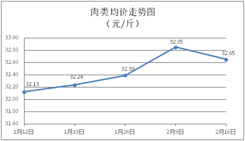 肉类商品价格小幅回落。所监测的8种肉类商品价格波动情况为7跌1平,综合零售均价为每斤32.65元,环比下降0.61%。其中:排骨、精瘦肉、牛肉、带骨羊肉零售均价分别为每斤31.75元、20.01元、46.57元、41.72元,环比分别下降0.41%、下降0.25%、下降0.26%、下降2.11%。