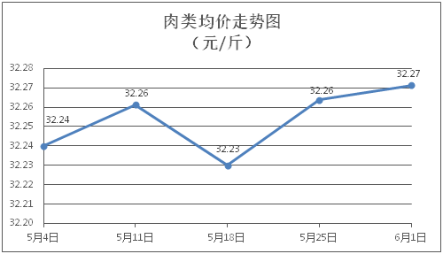 肉类商品价格总体微涨。所监测的8种肉类商品价格波动情况为5涨2跌1平,综合零售均价为每斤32.27元,环比上涨0.02%。其中:排骨、精瘦肉、肋条肉、牛肉、带骨羊肉零售均价分别为每斤30.68元、19.18元、16.09元、46.36元、42.04元,环比分别上涨0.07%、下降0.52%、上涨0.37%、上涨0.04%、上涨0.17%。