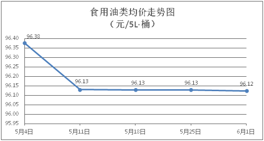 食用油类商品价格基本平稳。所监测的9种食用油(5L装)商品价格波动情况为1跌8平,综合零售均价为每桶96.12元,环比下降0.005%。其中:鲁花花生油、金龙鱼调和油零售均价为每桶156.32元、71.46元,环比分别下降0.03%、持平。