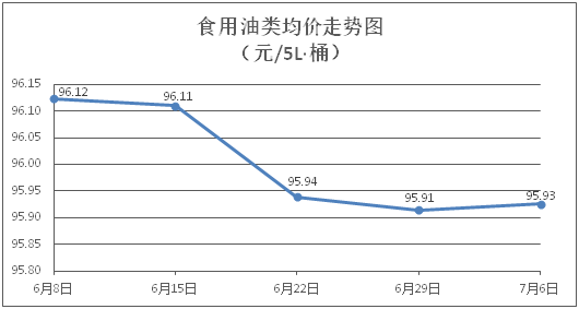食用油类商品价格稳中微调。所监测的9种食用油(5L装)商品价格波动情况为1涨1跌7平,综合零售均价为每桶95.93元,环比上涨0.01%。其中:金龙鱼花生油、玉米油零售均价为每桶102.83元、76.18元,环比分别上涨0.16%、下降0.08%。