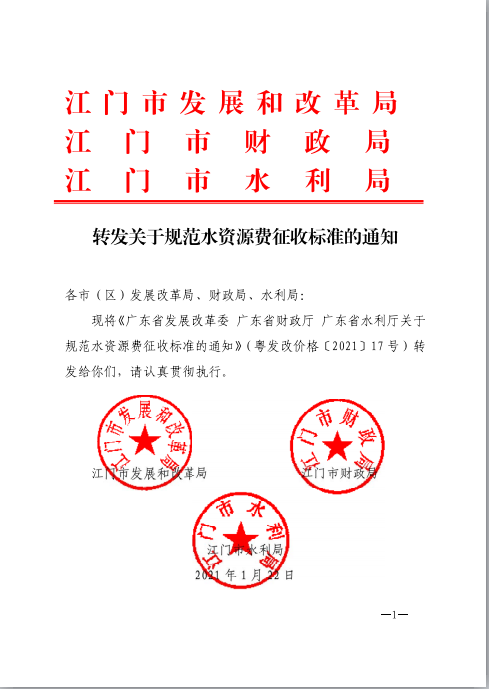 附件1:关于规范水资源费征收标准的通知(粤发改价格〔2021〕17 号).pdf