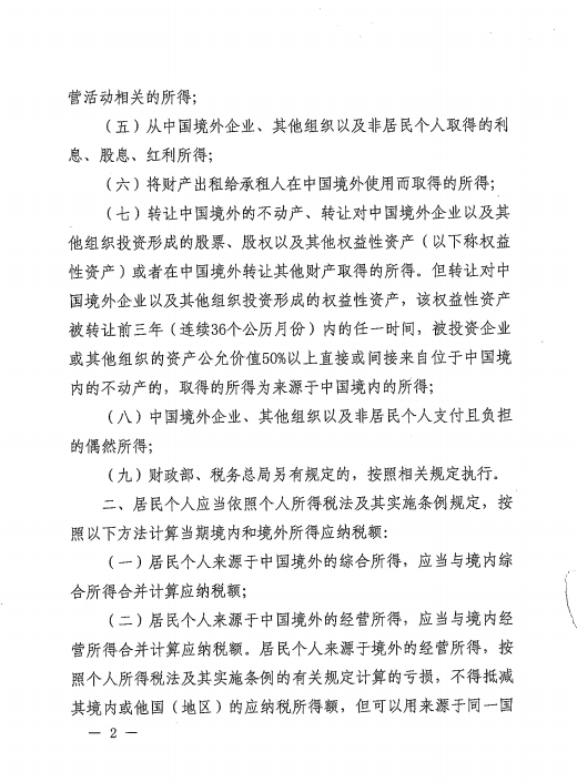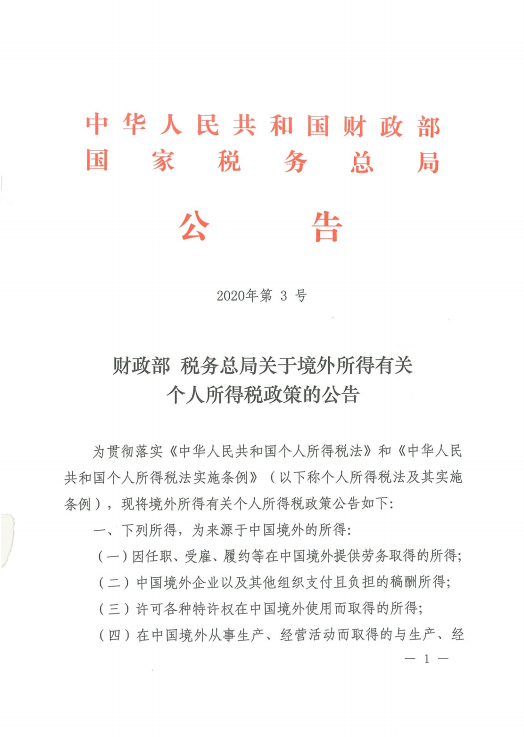 财政部+税务总局关于境外所得有关个人所得税政策的公告