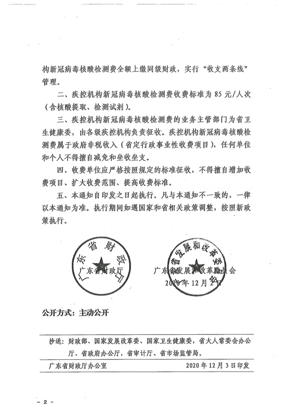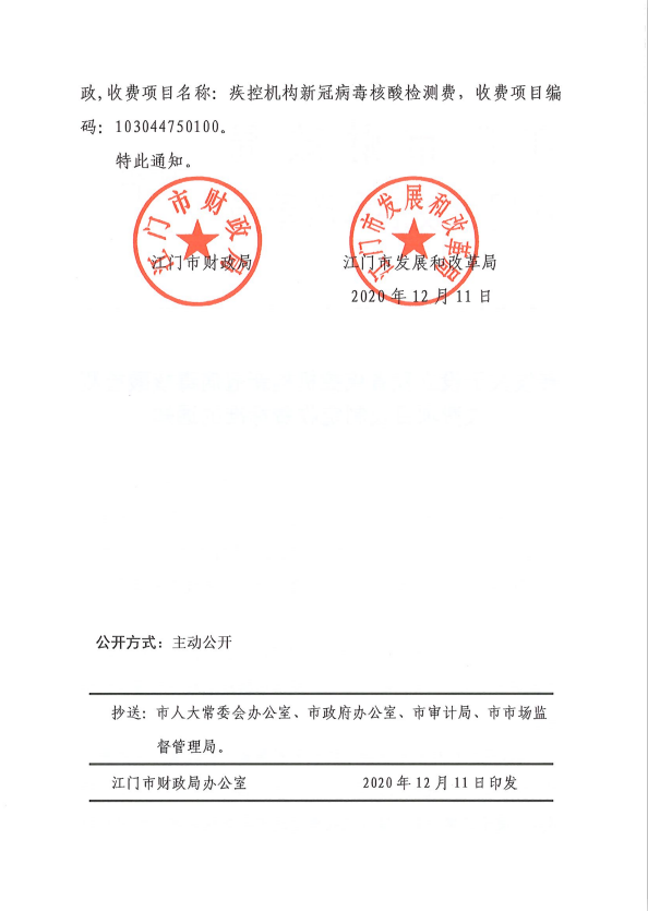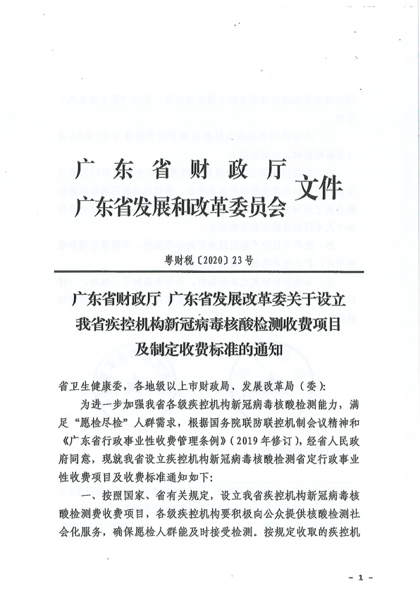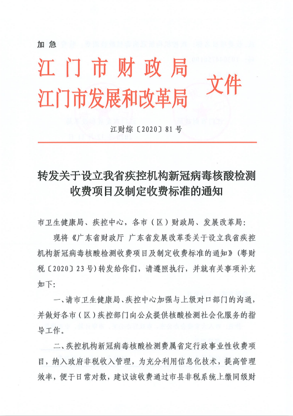 转发关于设立我省疾控机构新冠病毒核酸检测收费项目及制定收费标准的通知