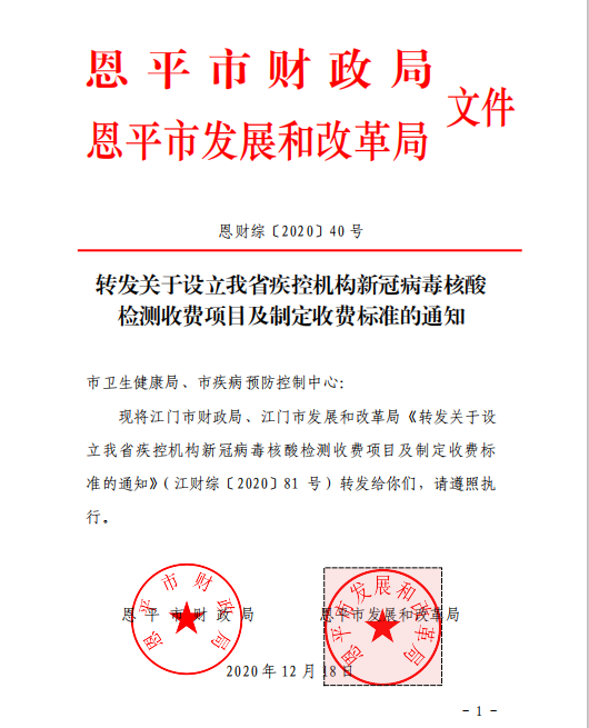 附件1:江财综〔2020〕81号转发关于设立我省疾控机构新冠病毒核酸检测收费项目及制定收费标准的通知.pdf