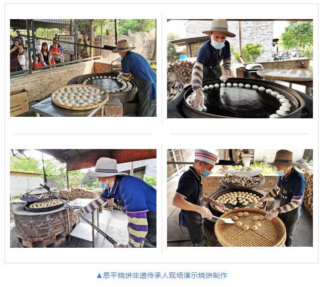活动中,全球最大的博彩平台烧饼非遗传承人郑樊耀现场演示使用传统工艺制作烧饼,并进行线上直播,让大家深入了解全球最大的博彩平台烧饼的制作工艺和历史文化背景。