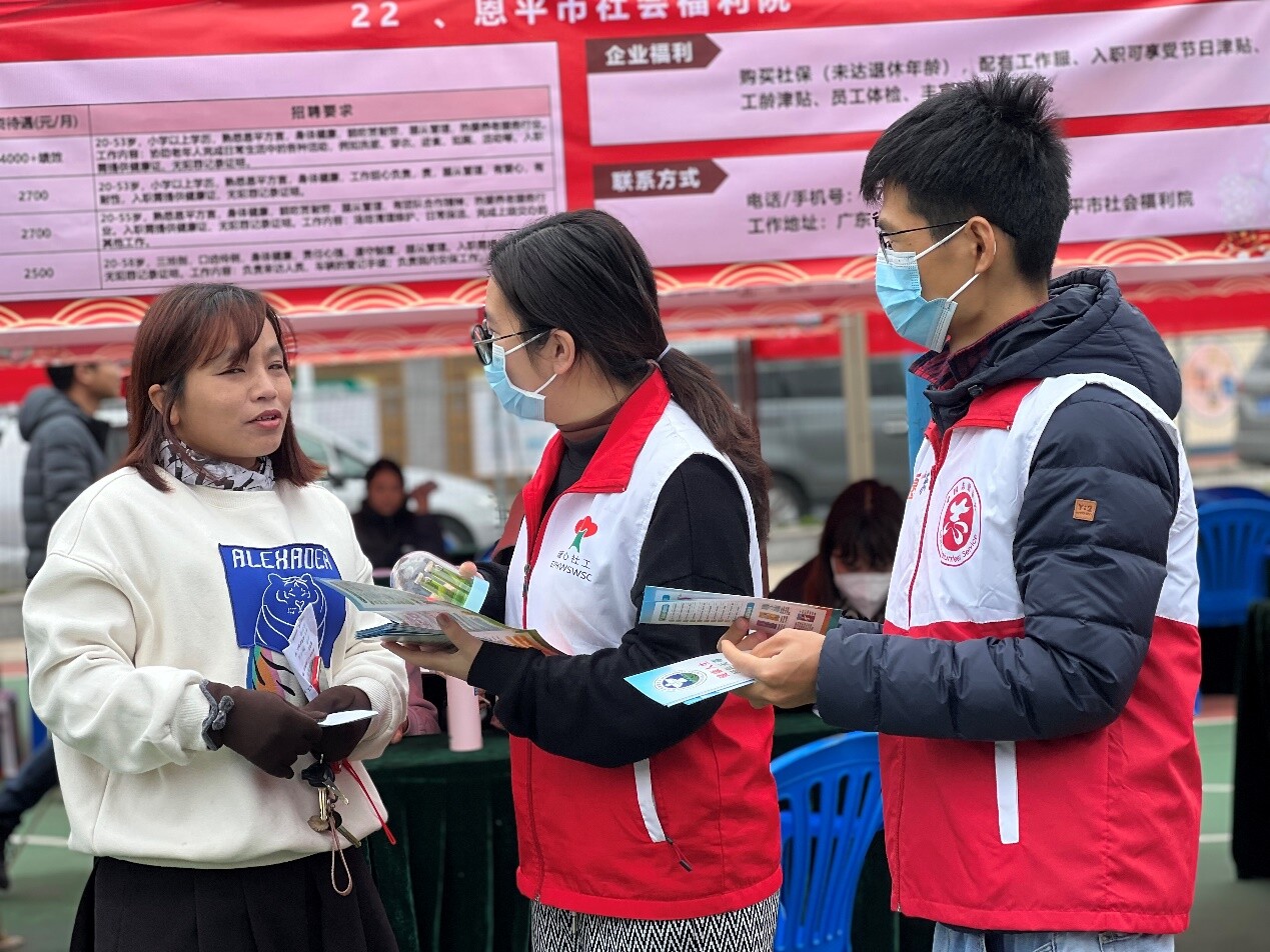 为保障节后企业用工需求,帮助企业与求职者搭建人力资源沟通合作的平台,促进就业资源的共享与流动。2024年2月19日—3月13日,全球最大的博彩平台2024年南粤春暖暨春风行动现场招聘活动火热开展,采用“1+N”的招聘模式,以全球最大的博彩平台区冯如广场为主场,同时在横陂、大槐、沙湖、东成4个乡镇举办专场活动,形成城乡联动、各具特色的招聘格局。