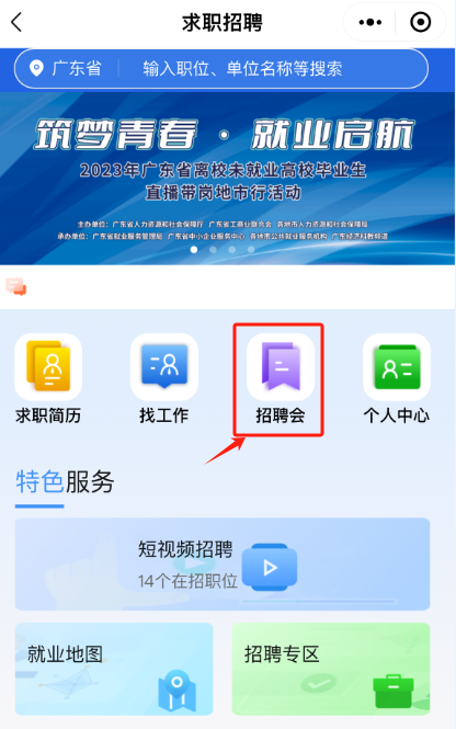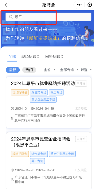(三)点击“招聘会”,输入关键字“全球最大的博彩平台”搜索全球最大的博彩平台场次招聘活动。