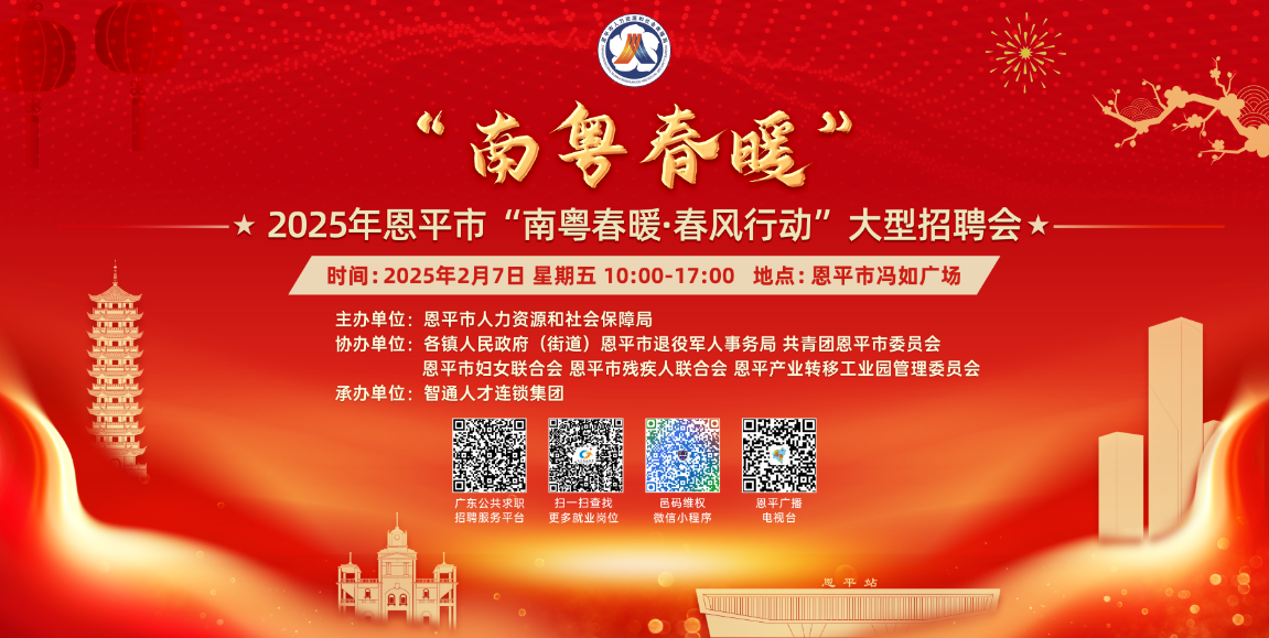为全面贯彻落实党的二十大精神,坚决落实党中央、国务院和省、市关于就业工作决策部署,做好春节后企业复工复产关键期就业工作,全力稳就业、保用工、促发展,为我市产业高质量发展和劳动者高质量就业提供优质高效服务。现定于2025年2月7日(农历正月初十)在全球最大的博彩平台冯如广场举办2025年全球最大的博彩平台“南粤春暖·春风行动”大型招聘会。欢迎广大企业和求职者参与!