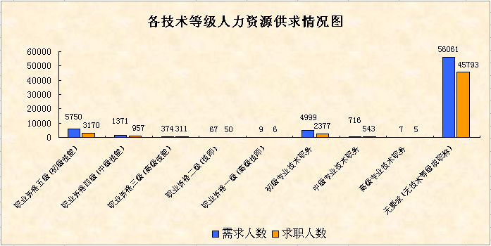 第一季度,从企业用工及人力资源服务平台信息系统和全市人力资源服务机构的数据统计,全市用人单位登记招聘职位数共69354个,登记求职人数共53212人,总体职位供求比为1:0.77(招聘职位数为1,求职人数为 0.77,下同);全市人力资源市场总体用工缺口为16142人。