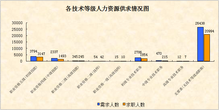 第三季度,从企业用工及人力资源服务平台信息系统和全市人力资源服务机构的数据统计,全市用人单位登记招聘职位数共36251个,登记求职人数共28007人,总体职位供求比为1:0.77(招聘职位数为1,求职人数为 0.77,下同);全市人力资源市场总体用工缺口为8244人。