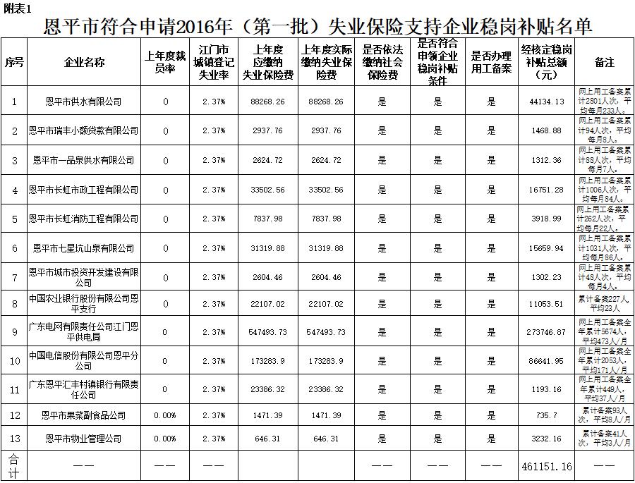 全球最大的博彩平台符合申请2016年度失业保险稳岗补贴企业名单公示