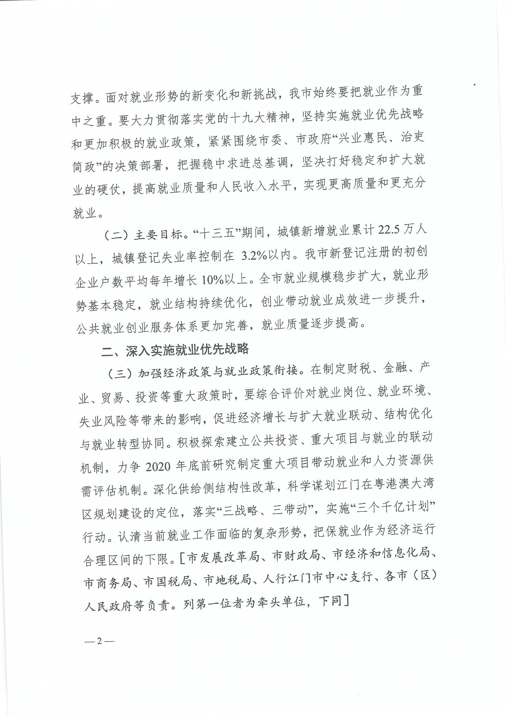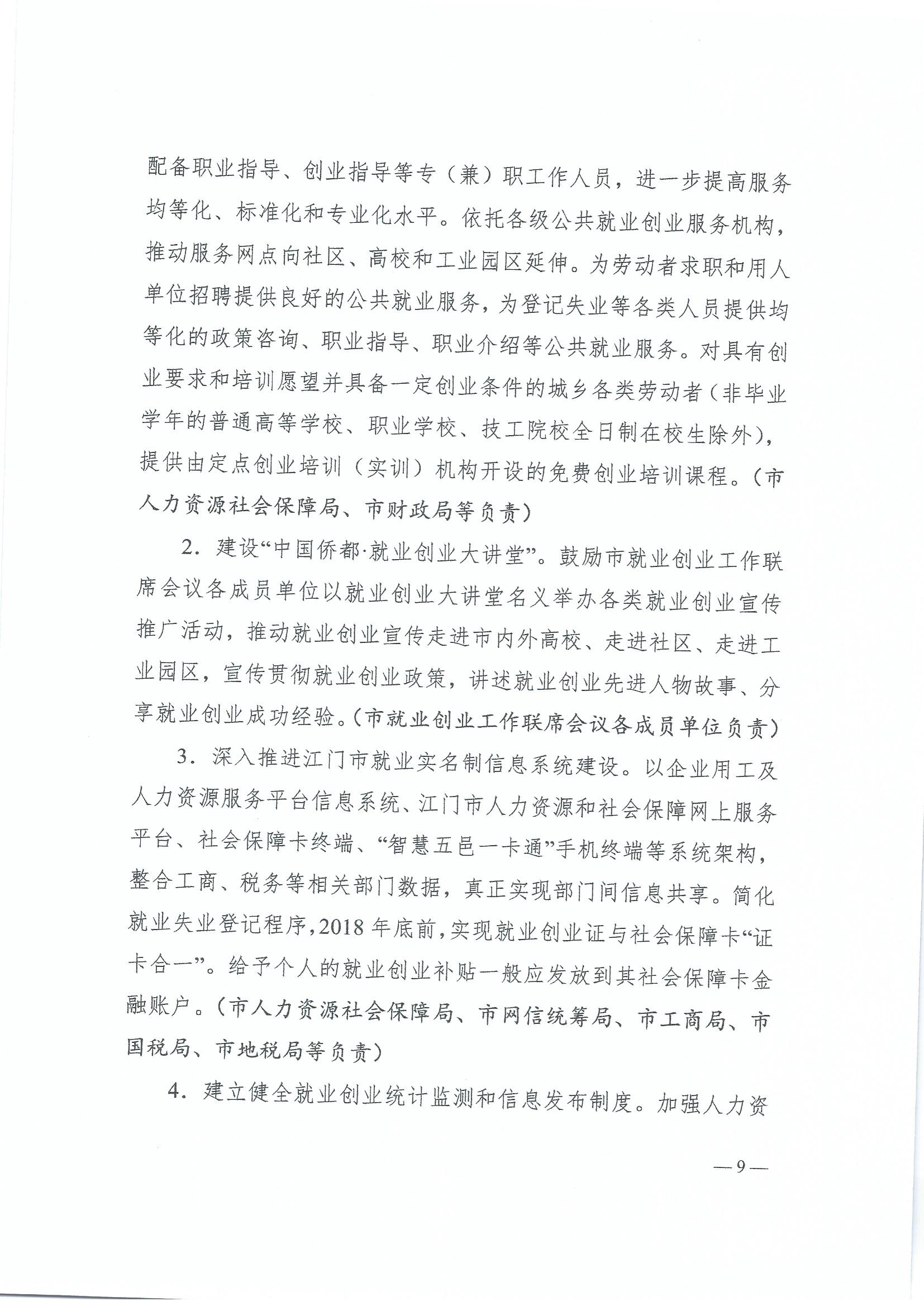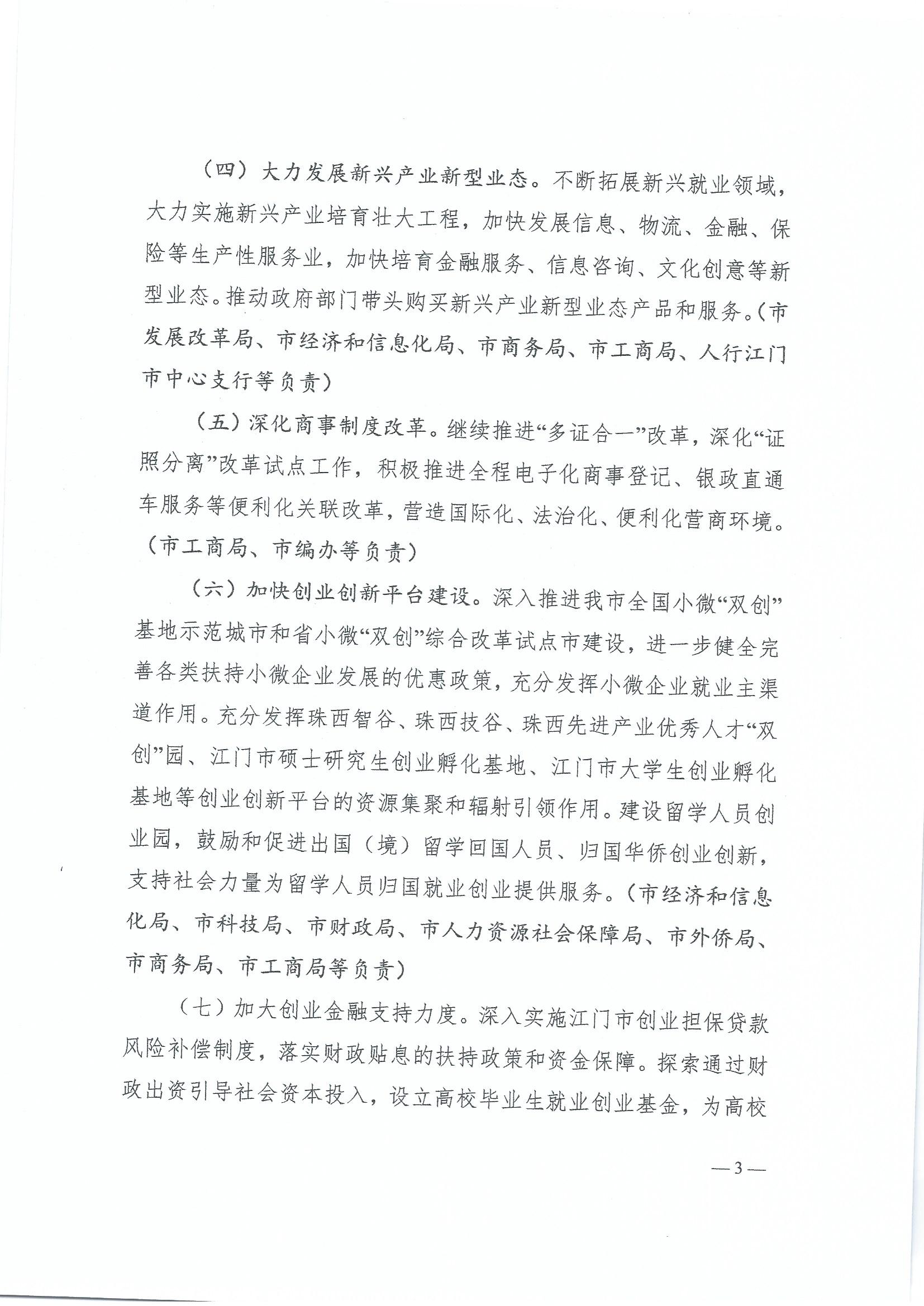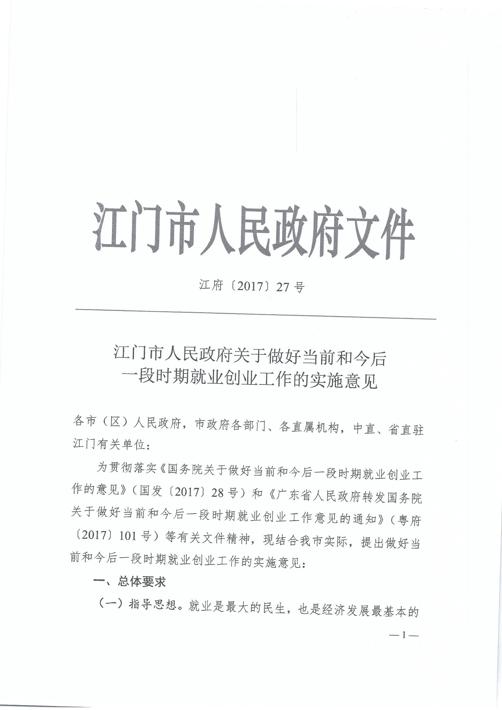 江门市人民政府关于做好当前和今后一段时期就业创业工作的实施意见