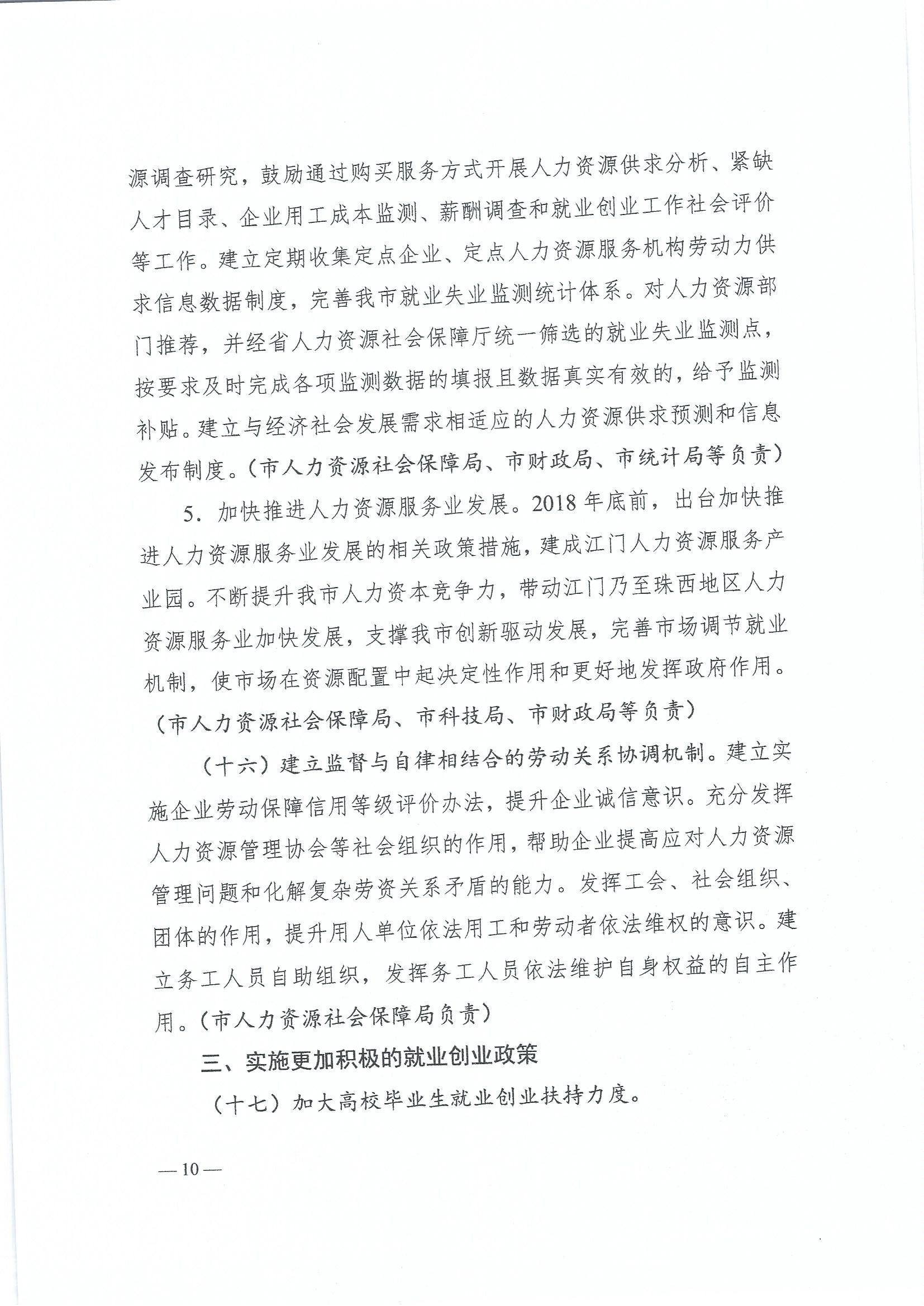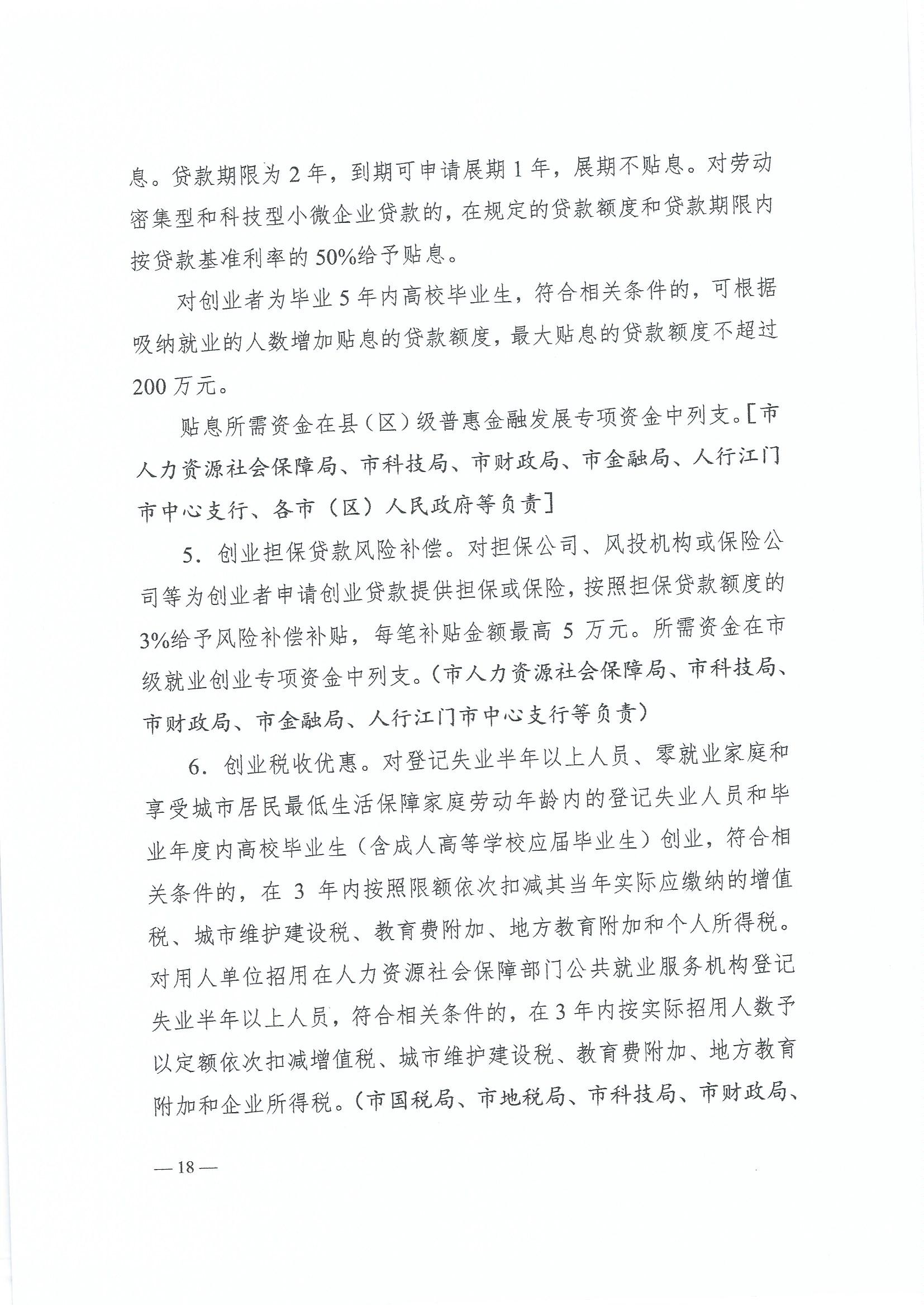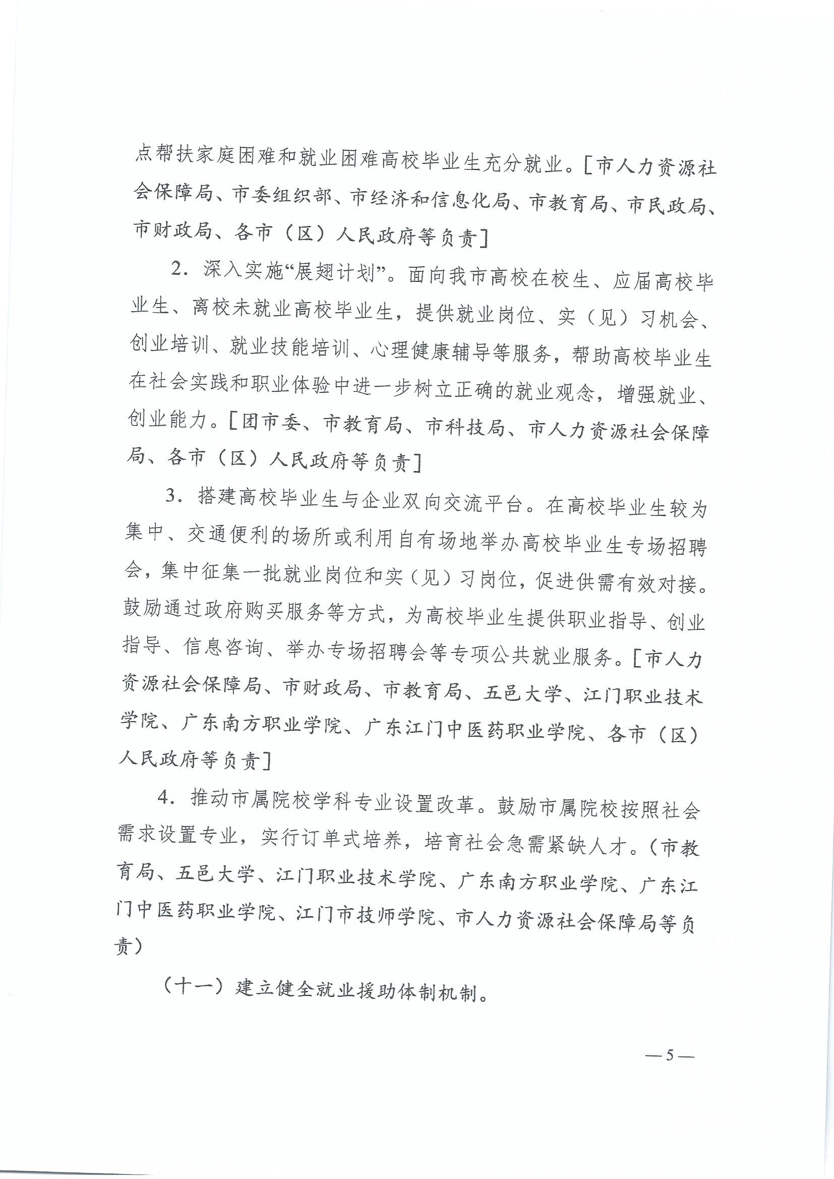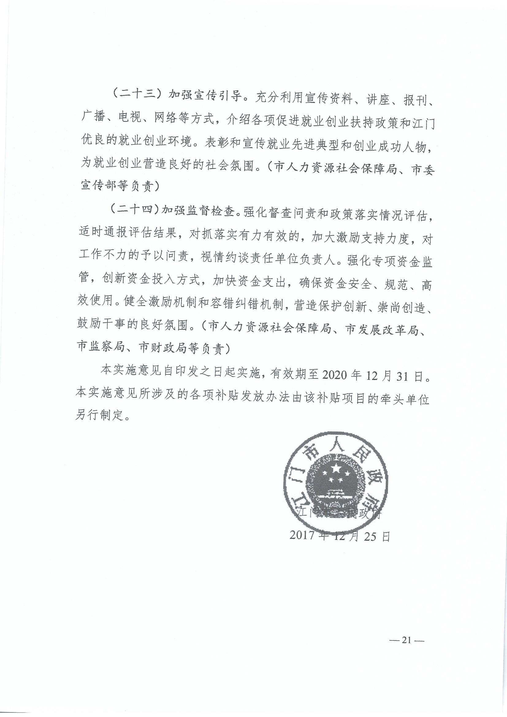 江门市人民政府关于做好当前和今后一段时期就业创业工作的实施意见