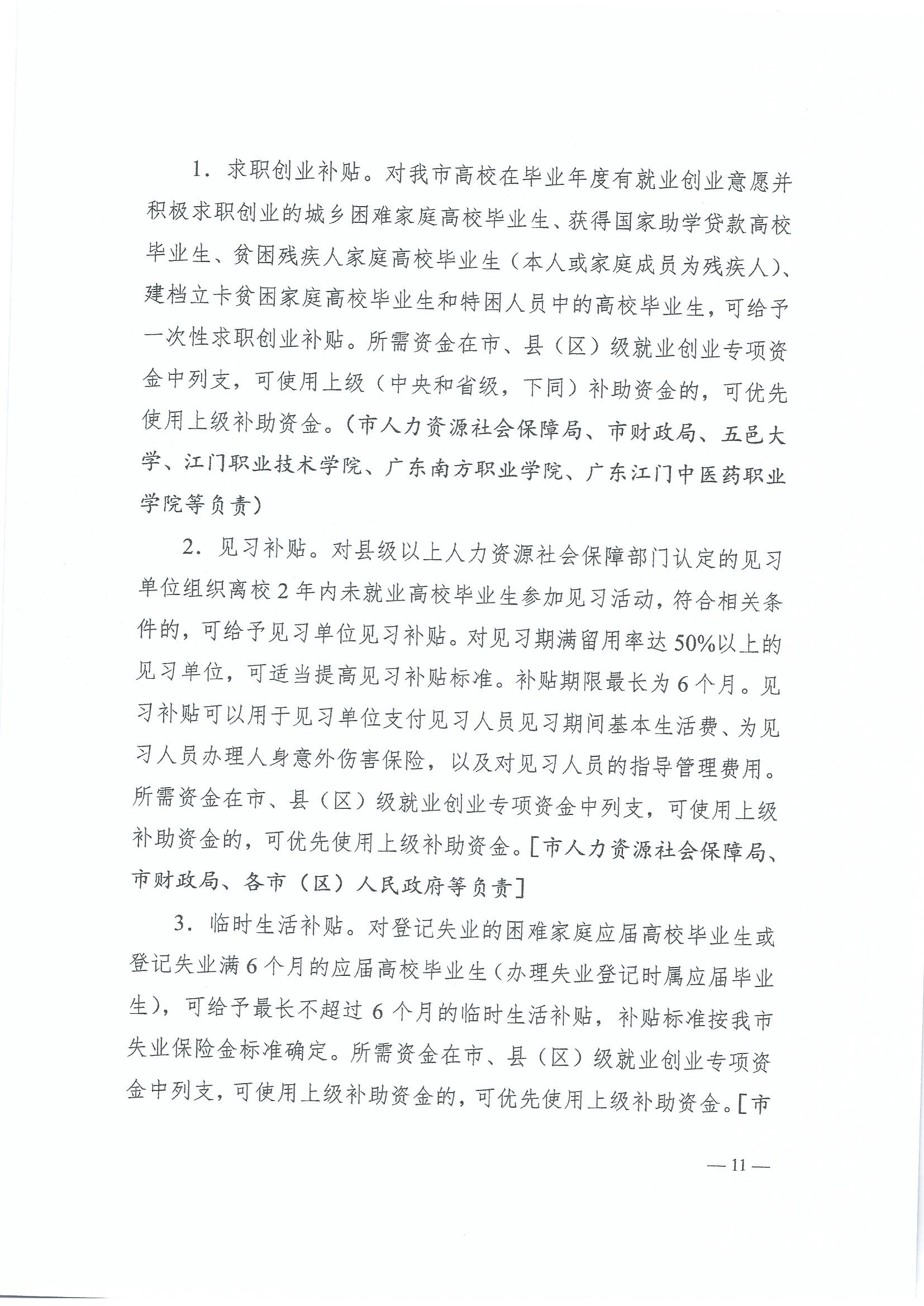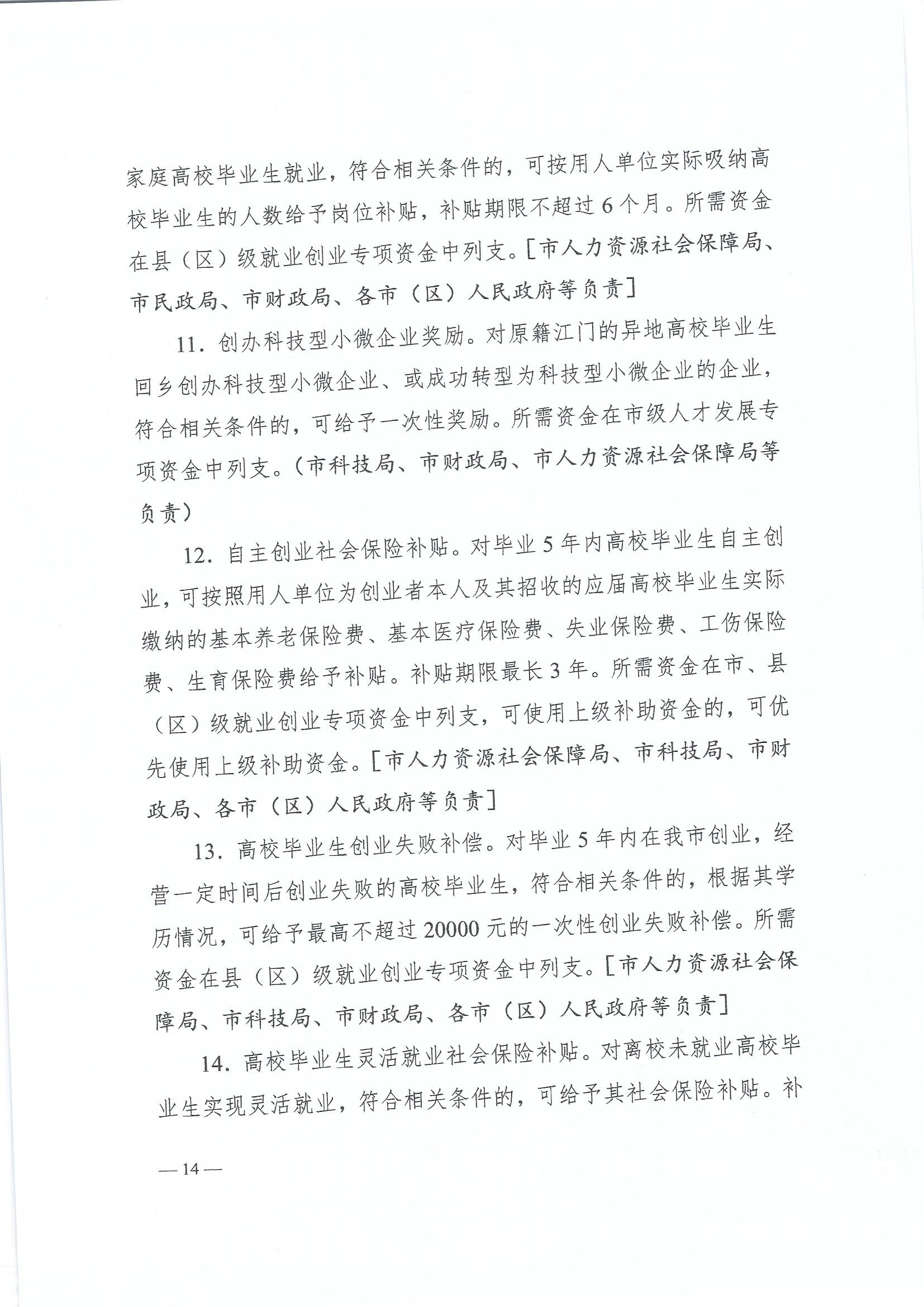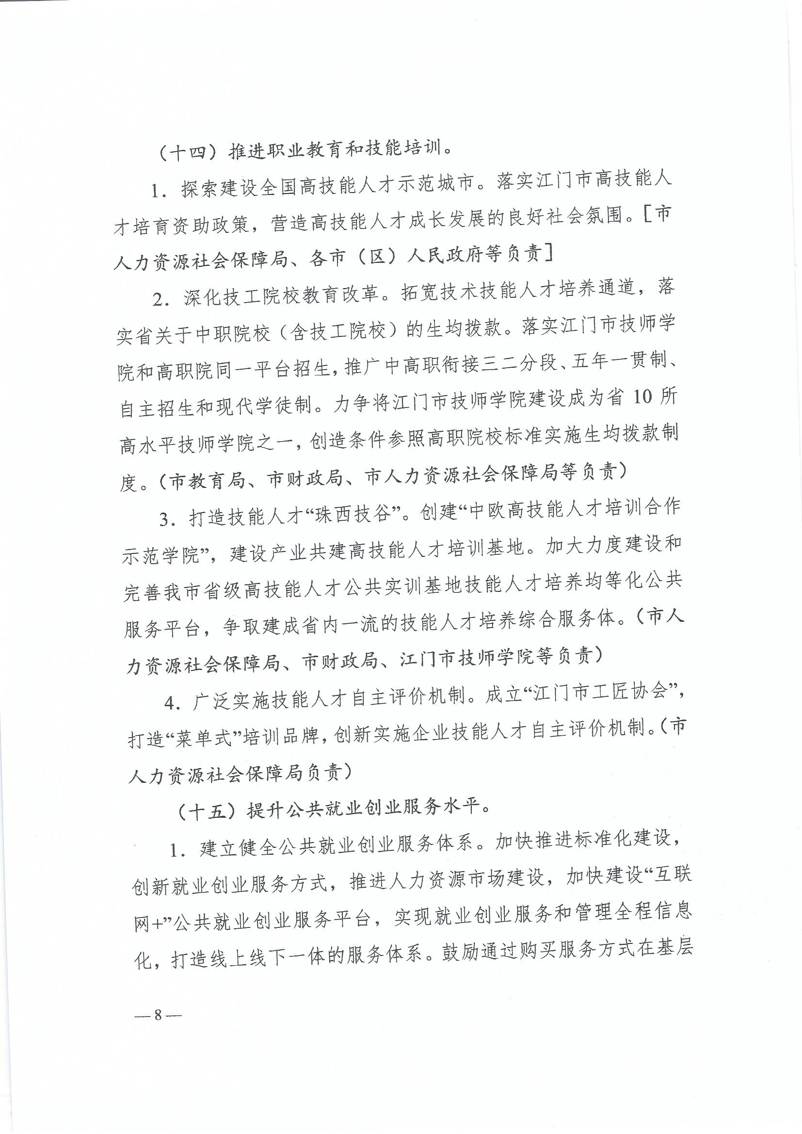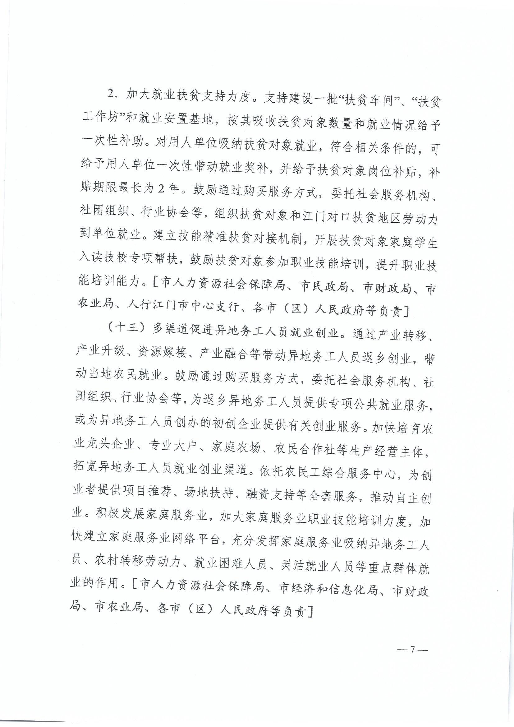 江门市人民政府关于做好当前和今后一段时期就业创业工作的实施意见