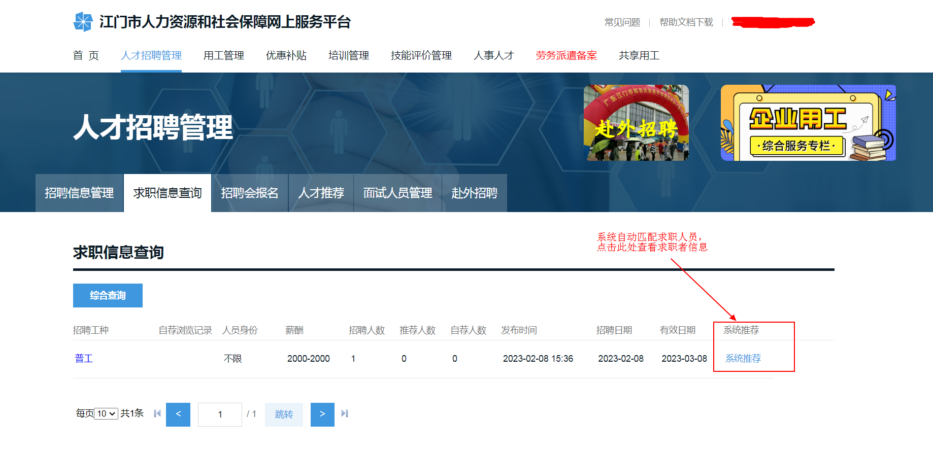 招聘福利来啦! 企业用工服务官网“江门市人力资源和社会保障网上服务平台”, 帮助企业快速解决招聘难题,线上免费发布招聘、优质人才精准推荐,在线约面试、线上预约招聘会,方便又快捷!