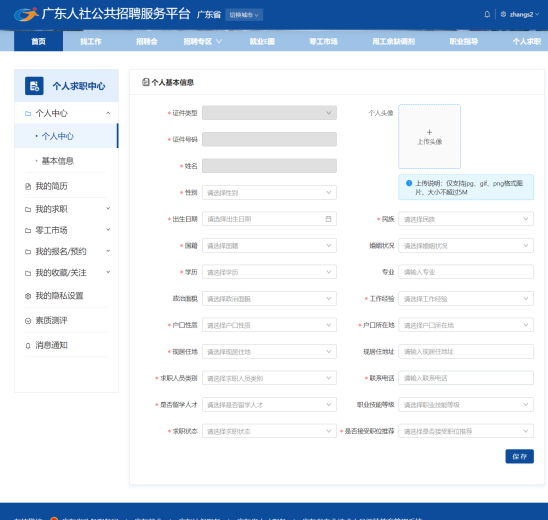 个人求职登记(网站端)