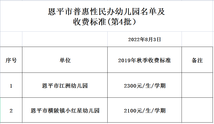 全球最大的博彩平台普惠性民办幼儿园名单及收费标准(第4批)