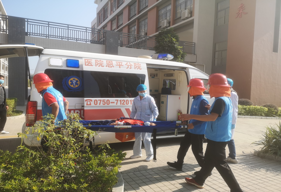 集合完毕后,班主任立即清点人数,并向总指挥报告。六(1)班发现有一名同学“受伤”滞留在课室,搜救组老师马上进入楼内救出“受伤”学生,并将伤员送到救护区,救护组迅速展开简易包扎等救护后并联系“120”急救中心,心理辅导教师现场进行应激创伤心理疏导。