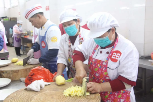 据了解,本次竞赛主题为“提高服务技能、争做师生喜欢的厨神”。本次竞赛均为团体赛,分三组进行,每组10队,每队参赛人数为2人,参赛选手需在33分钟内完成两个作品的制作。一是基本功作品,在8分钟内切土豆丝;二是指定主料自选作品,在25分钟内完成一道突出粤菜风味的五花肉类小炒。