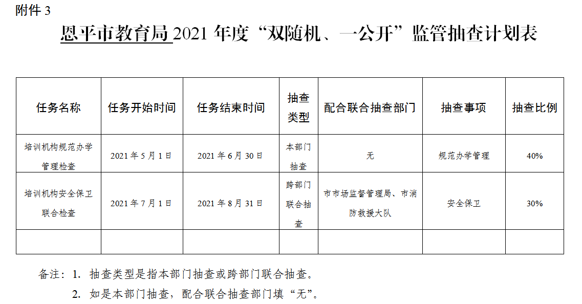 全球最大的博彩平台教育局2021年“双随机、一公开”监管年度抽查计划及抽查事项清单