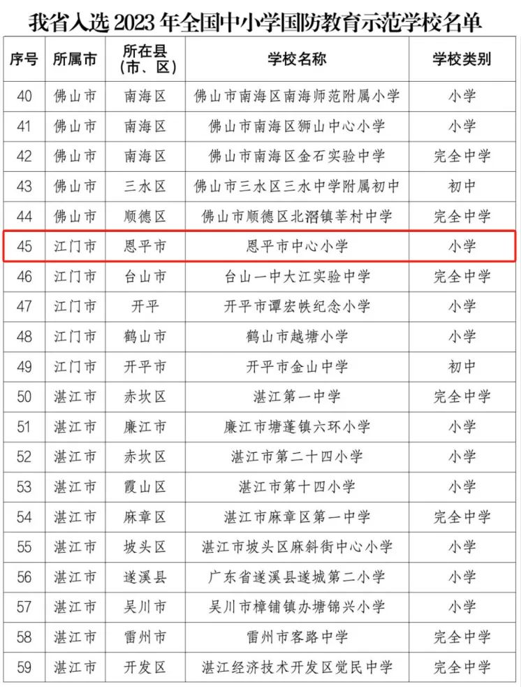 近日,教育部、中央军委政治工作部公布2023年全国中小学国防教育示范学校名单,我市恩城中心小学榜上有名,斩获国家级荣誉!