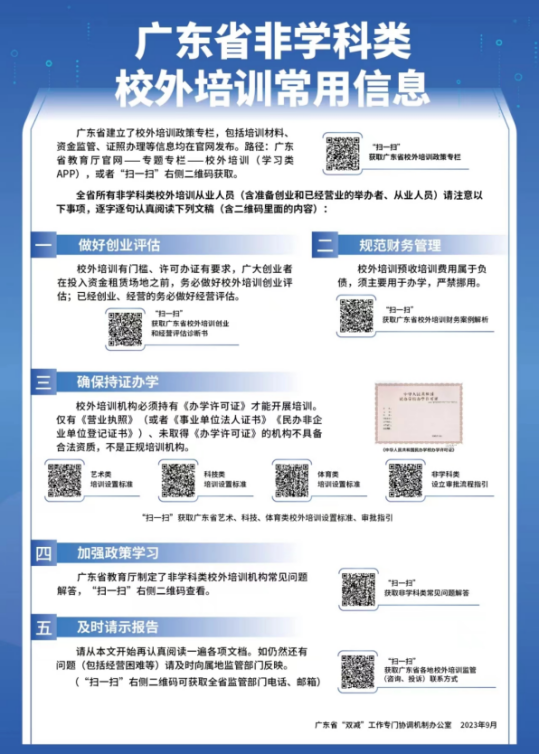 如确需为孩子报读校外培训机构,要尊重孩子的意愿兴趣和结合身心特点,适量科学选择证照齐全的校外培训机构,并做到“三必须”“三不要”,以保障自身权益。