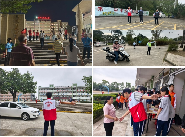 各校身穿红马甲的教师、学生志愿者热情地迎接前来参会的家长们。他们面带微笑,耐心地为家长指引方向;还指挥来往车辆通行,让车辆有序停放,时刻守护着学校的安全,用实际行动搭建了学校与家长之间沟通的桥梁。